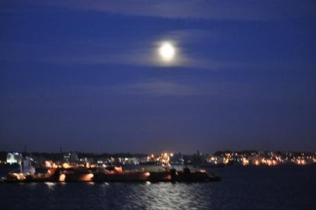 We arrived back on the Mother Ship around 4 , we had walked for 8 hours. The sail away was the best sight ever. It was just getting dark enough for all the lights to come on. The skyline is beautiful, the photos probably don't do it justice.