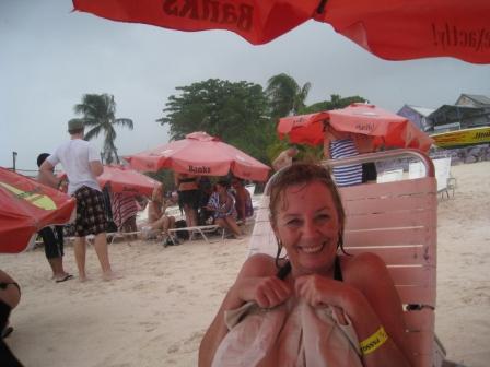 We walked for a fair distance and eventually came to The BoatYard Beach Resort. The deal was for $10 each we got entry, a lounge chair and umbrella and a free Rum Punch right on the beach. A private oasis really. The place was buzzing and a great atmosphere. We spent about 3 hours just soaking up the sun (under the shade) and having a swim in in The Carribean. How good is that. So there we were in the ocean and as per usual for us lately, the rain came. It bucketed down and we ran for the cover of the bar. Another few drinks and we caught the free bus back to the ship.